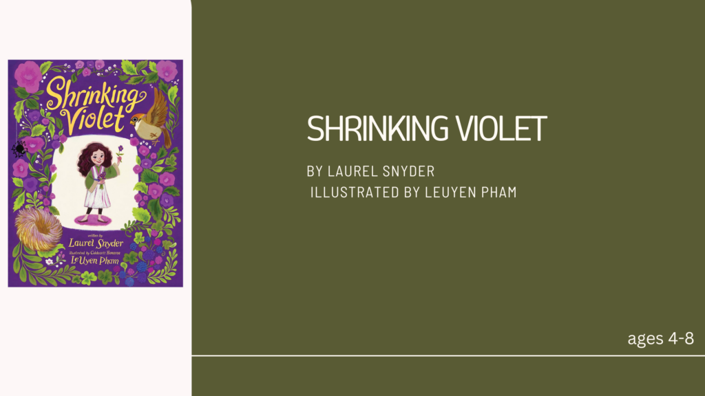 Laurel Snyder books always hit home with me, tender and from the heart. Shrinking Violet is a beautifully illustrated story about fear and bravery the power of finding inner strength, adding this into the Big Feelings section.