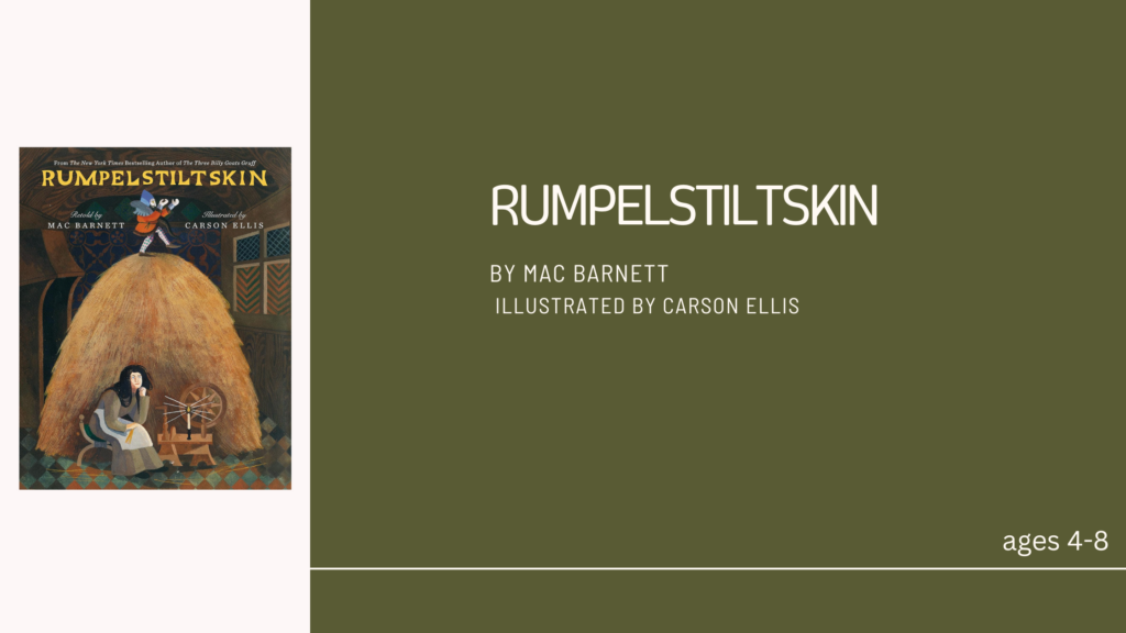 They had me at Carson Ellis and Mac Barnett. I can’t resist a retelling, and I can already hear the humour and clever voice of Mac as Rumpelstiltskin. If you loved The Three Billy Goats Gruff, this book is for you.